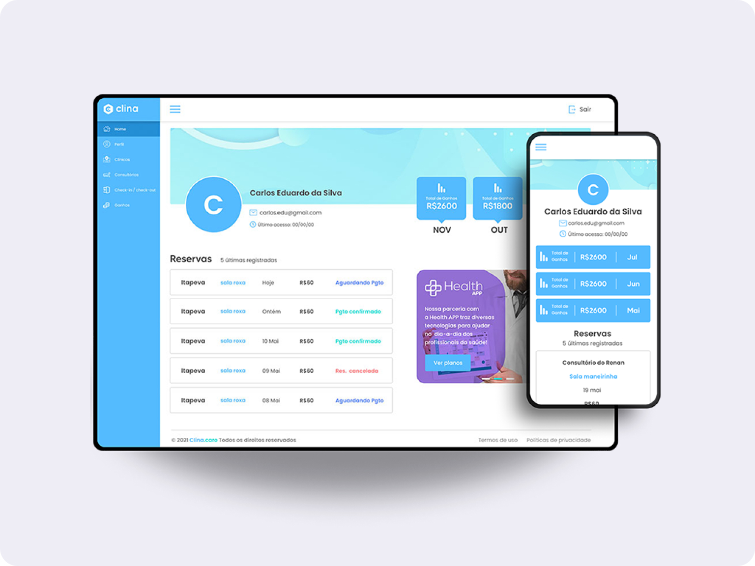 Clina.care é um Marketplace que conecta profissionais de saúde a clínicas parceiras em uma plataforma de Pagamento por uso.