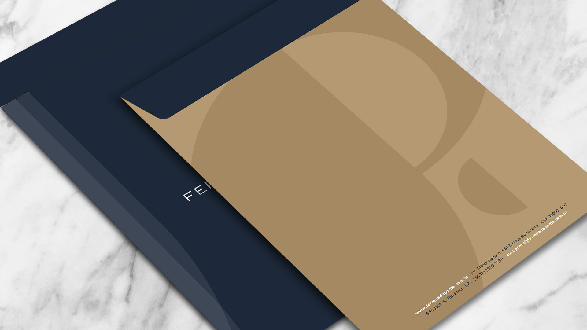 Projetando materiais gráficos como cartões de visita, pastas e envelopes. Esses itens devem seguir as diretrizes estabelecidas no Manual da Marca para manter a consistência visual da marca em todos os aspectos.
